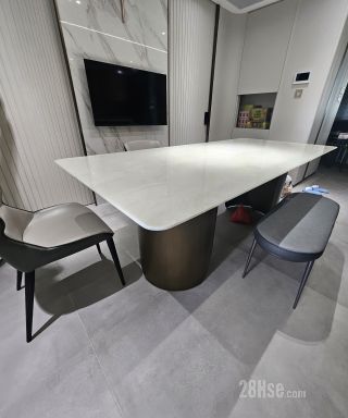 【产品亮点】 材质珍稀 - 整张台面采用天然「卡里冰玉」石材,质地温润如玉,冰晶纹理自然流动,光线下呈现半透明质感,每寸花纹都独一无二。 工艺精湛 - 石材经过多次抛光打磨,表面光滑如镜,边缘倒角圆润,搭配优质金属桌脚,稳重大气。 尺寸实用 - 2.2米大尺寸设计,轻松容纳8人聚餐,特别适合大家庭或常招待朋友的居住空间。 【使用情况】 购于2025年8月,日常使用仔细,台面完好无裂痕 定期石材护理保养,色泽依旧亮丽
