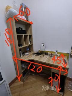 1. 租合实木书桌连书架, $150, 阔120cm x 深60cm x 高160cm, 可分开4件(最高90cm), 容易搬运, 容易租装, 很新净 2. 实惠书架, $50, 高118cm x 阔72cm x 深26cm(最底层有少裂)