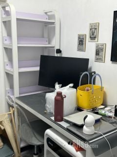 亮面材质 十分易于打扫清洁 隔板可自由调较层数和高度 玻璃柜门清晰可见 方便取物 枱面下拉出层板即可为键盘作承载 里面同时有隐藏柜桶可作收纳用途 88成新