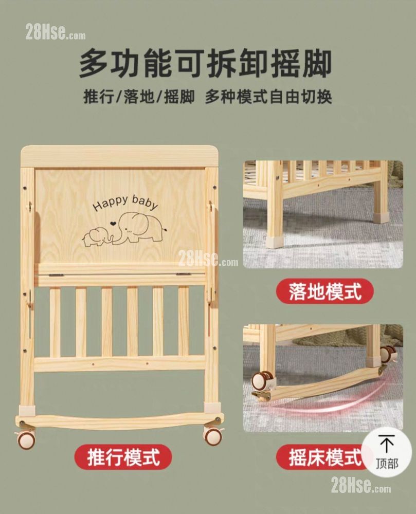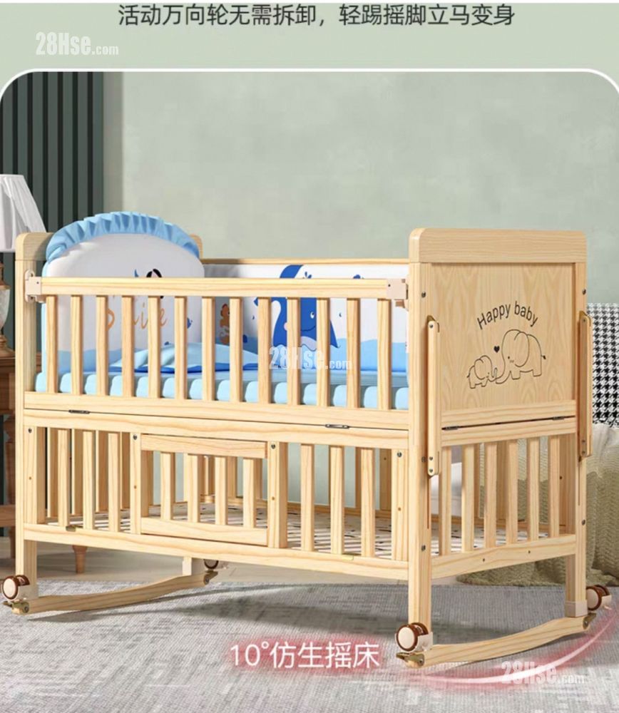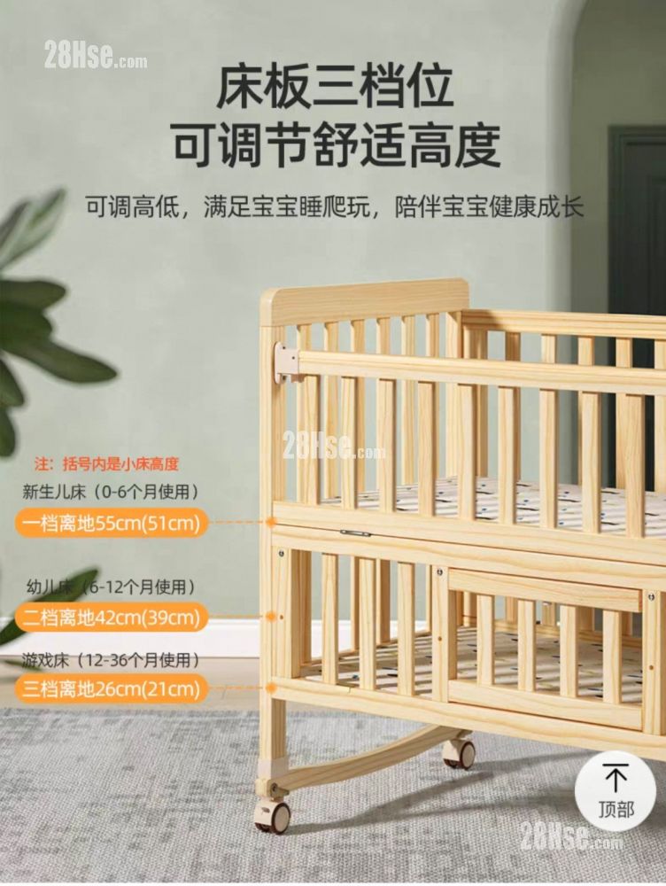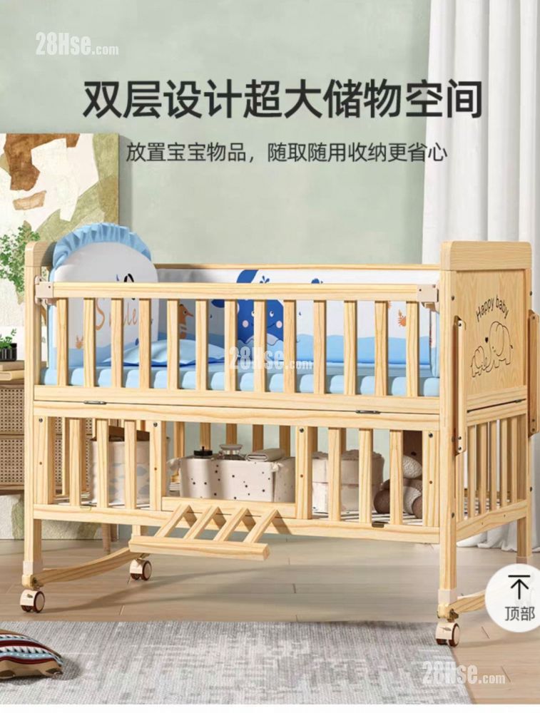 106*64*89(长*宽*高)多功能,高度可调三档,带大学储物空间,木制婴幼儿床,很少使用。