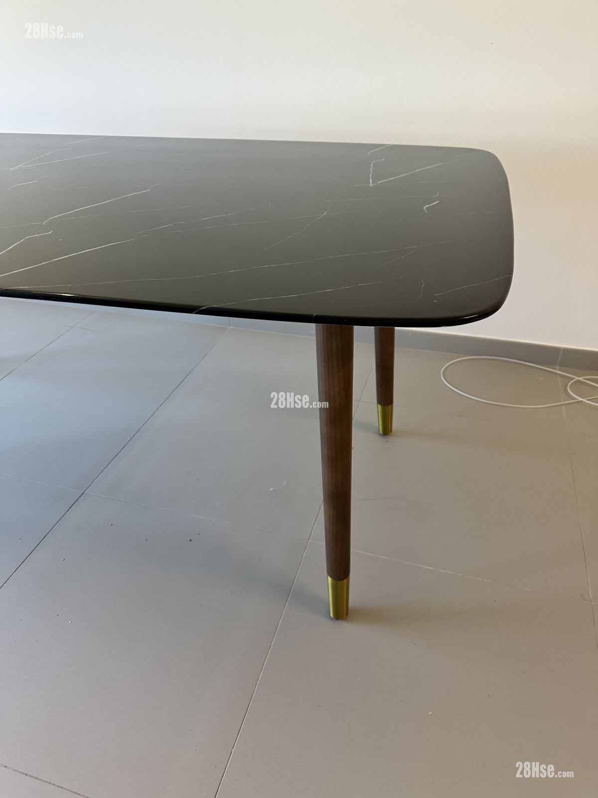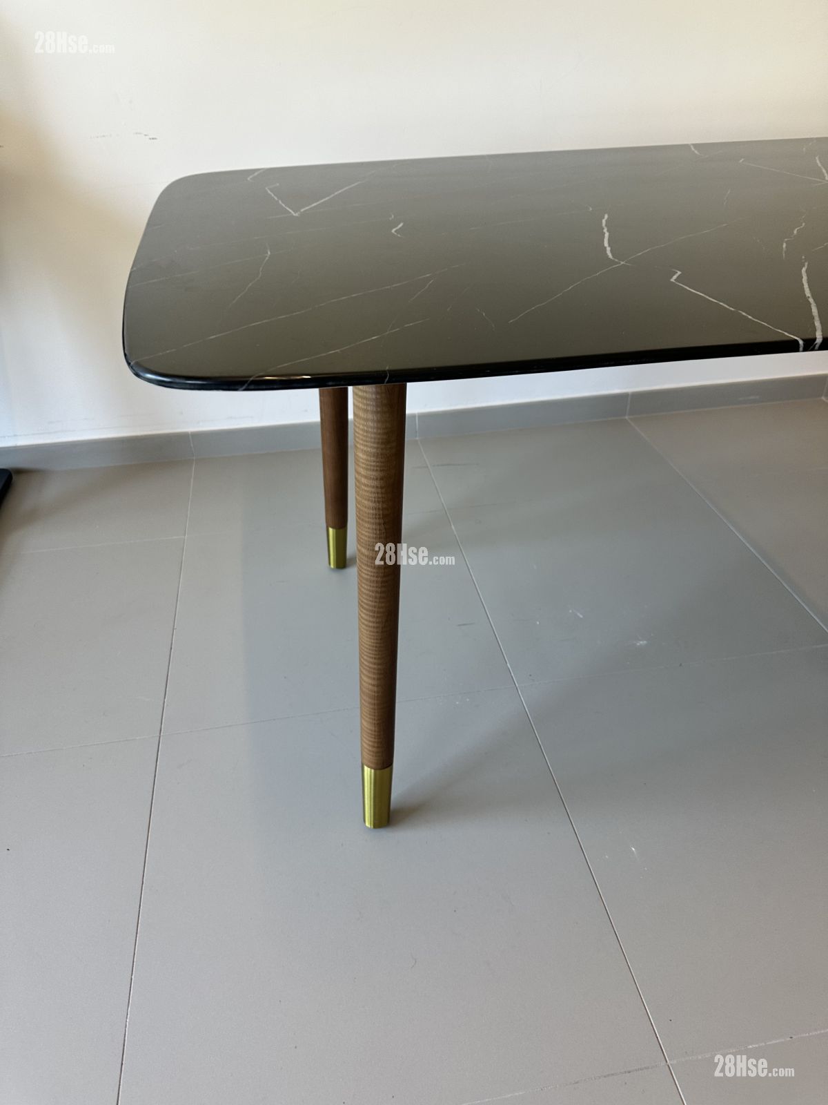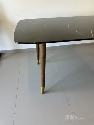 大理石台面。木质桌脚。 0