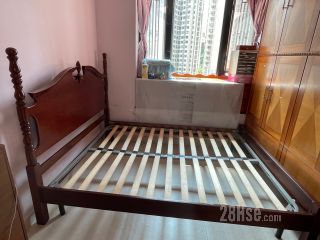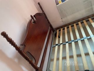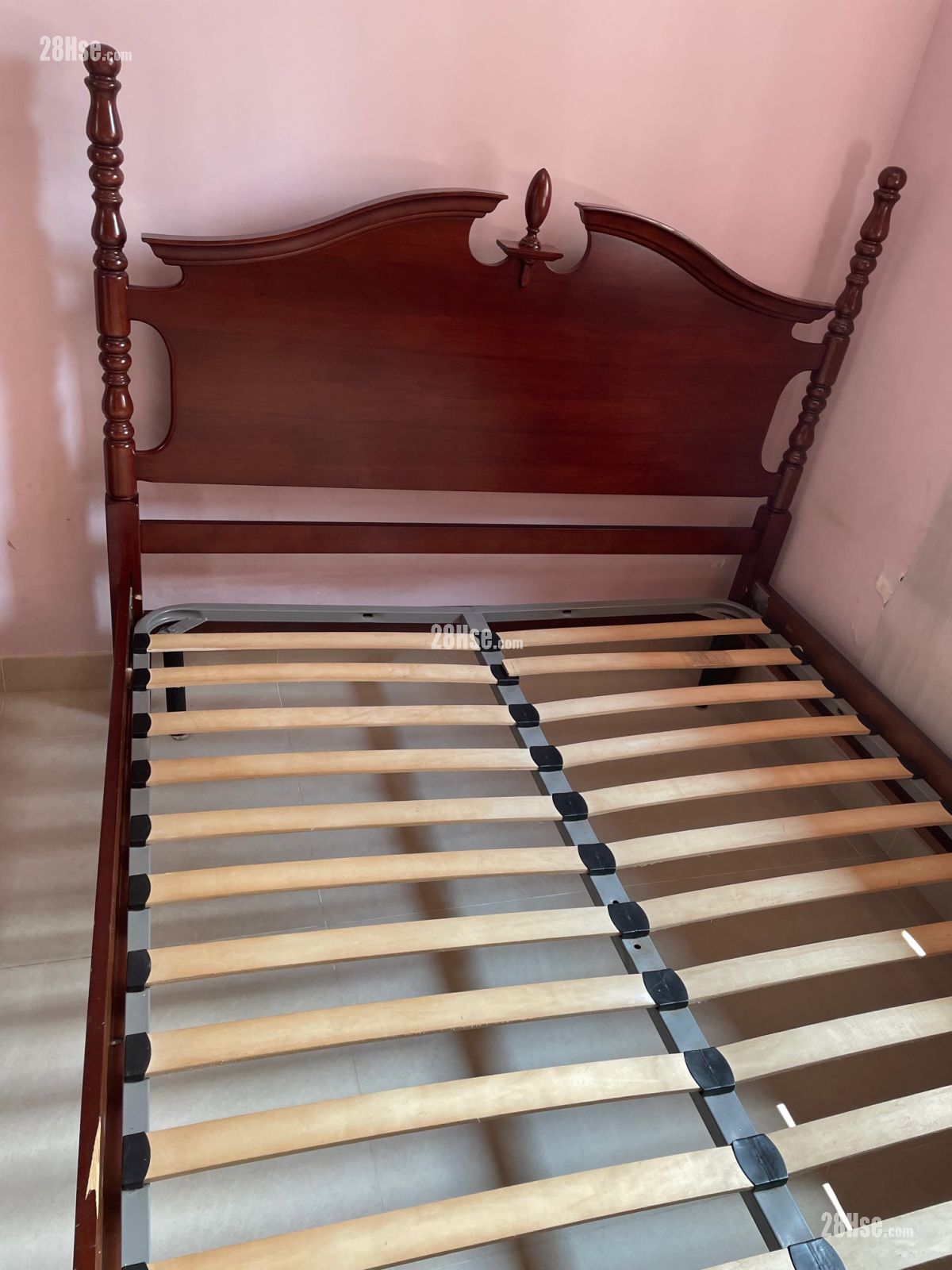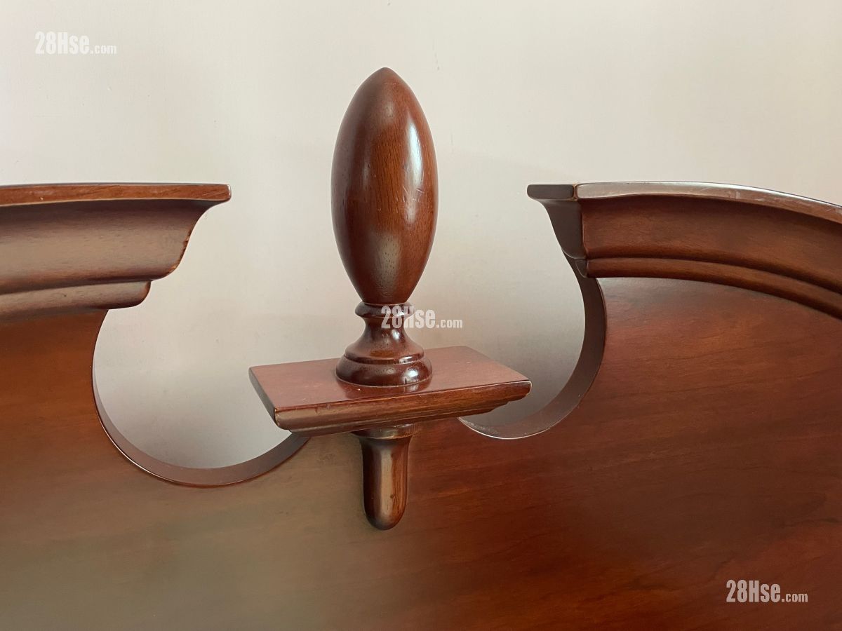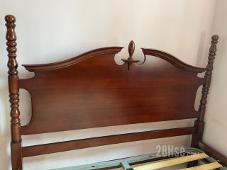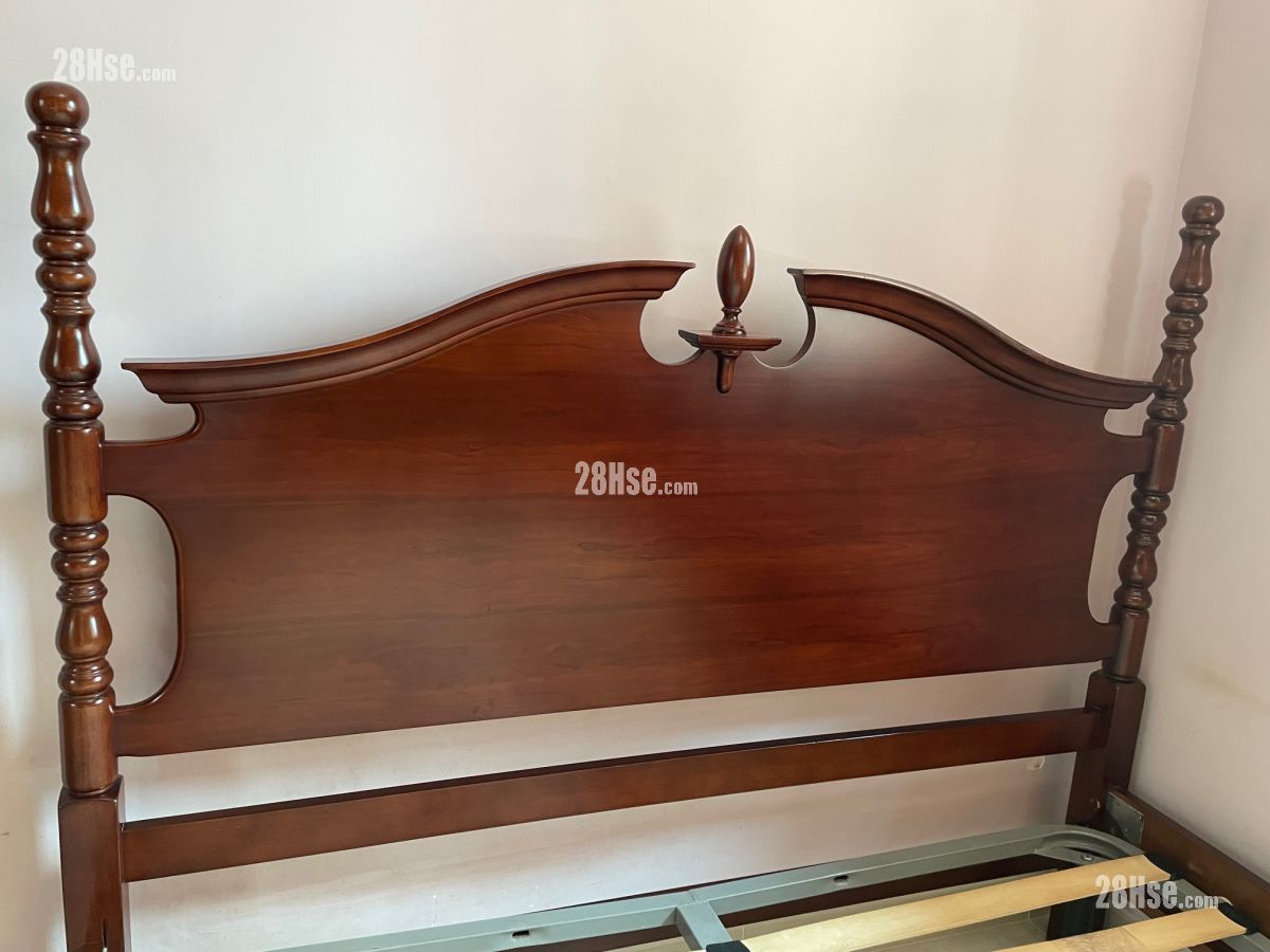 欧陆古典贵族雕刻红木大床, 精致雕刻床头版连实木雕刻柱, 配金属床架框, 木条板欧陆床架. 5尺 x 6 尺3 寸