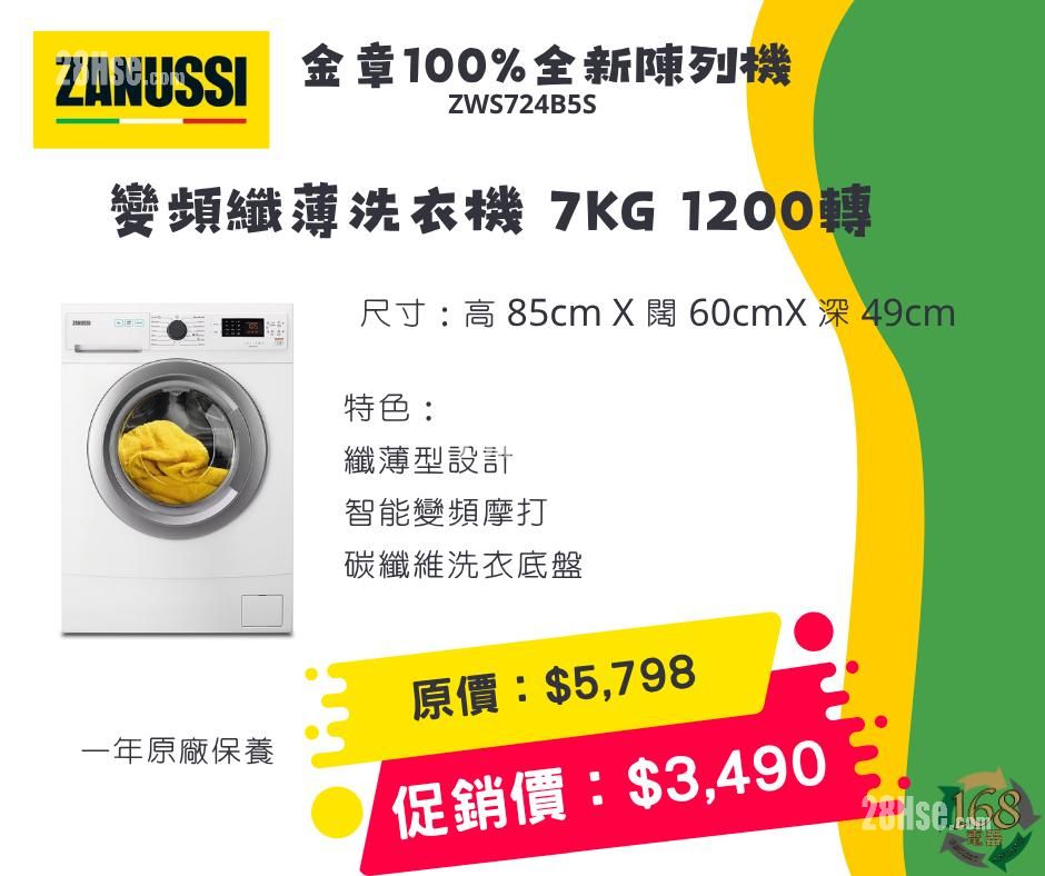 变频纤薄7KG 1200转 - $3,490(原价$5,798)
