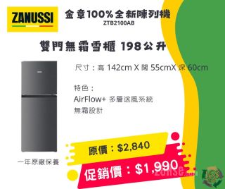 双门无霜雪柜198公升 - $1,990(原价$2,840)