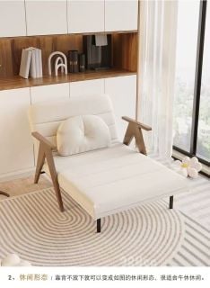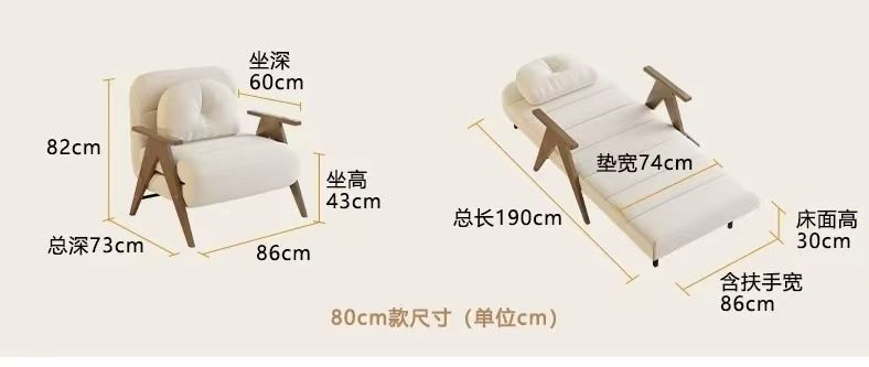 原价人民币1168,未拆纸盒,全新的,因为单坐位不适合,所以出让。这款多功能沙发床具有五档靠背角度调节,满足不同需求。可变成休闲躺椅或床的形态。采用蓝灰猫抓布,80cm款。尺寸:总深73cm,坐深60cm,坐高43cm,总长190cm,床面高30cm,含扶手宽86cm。乳胶款坐面和床面均增加2cm乳胶面,舒适透气。