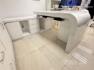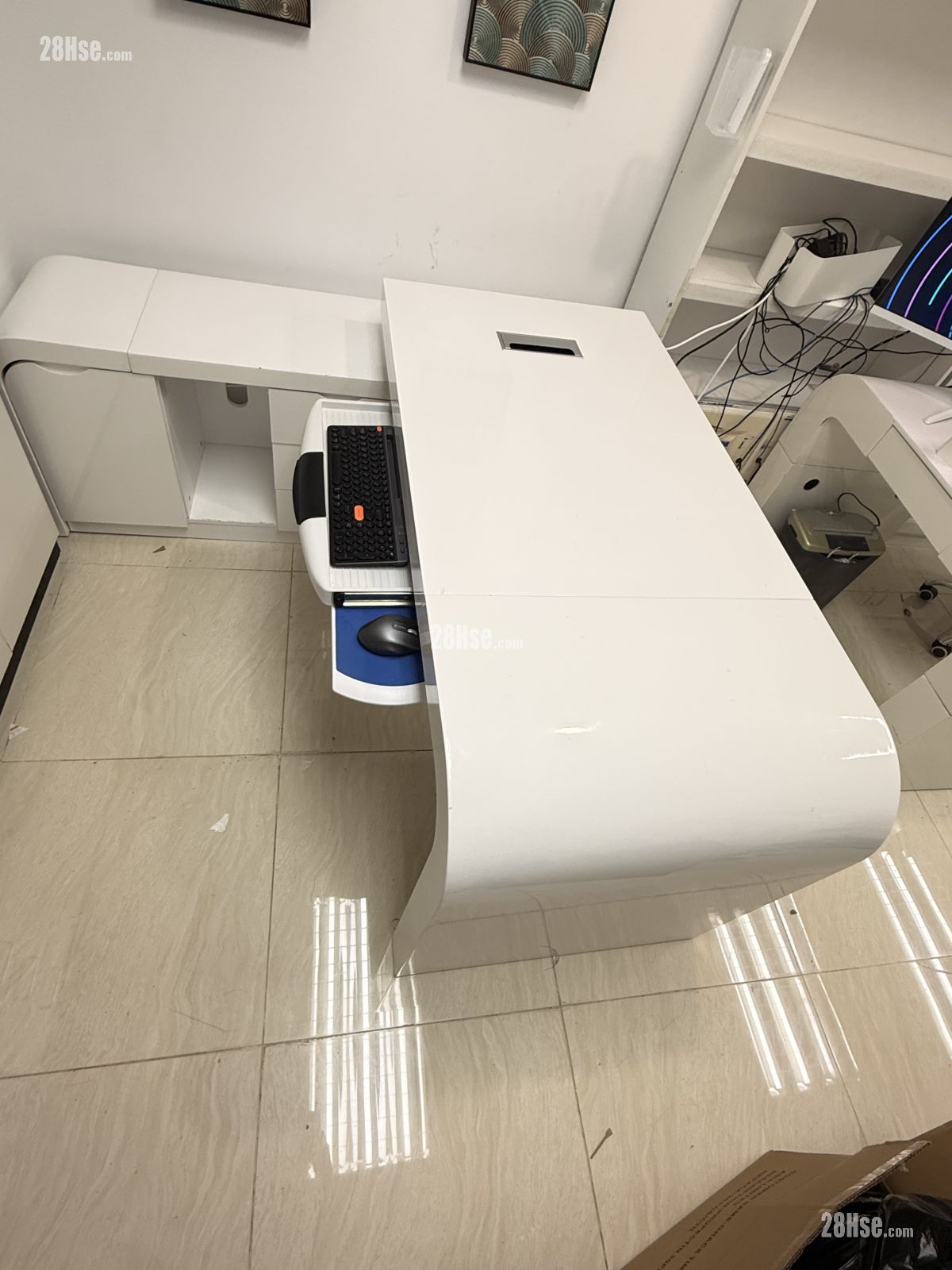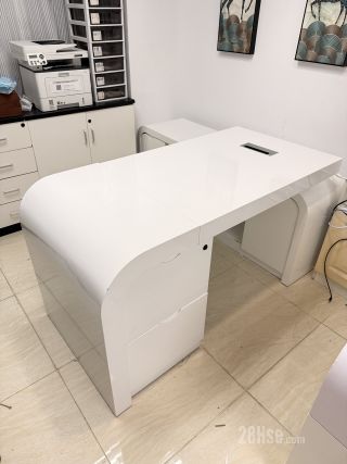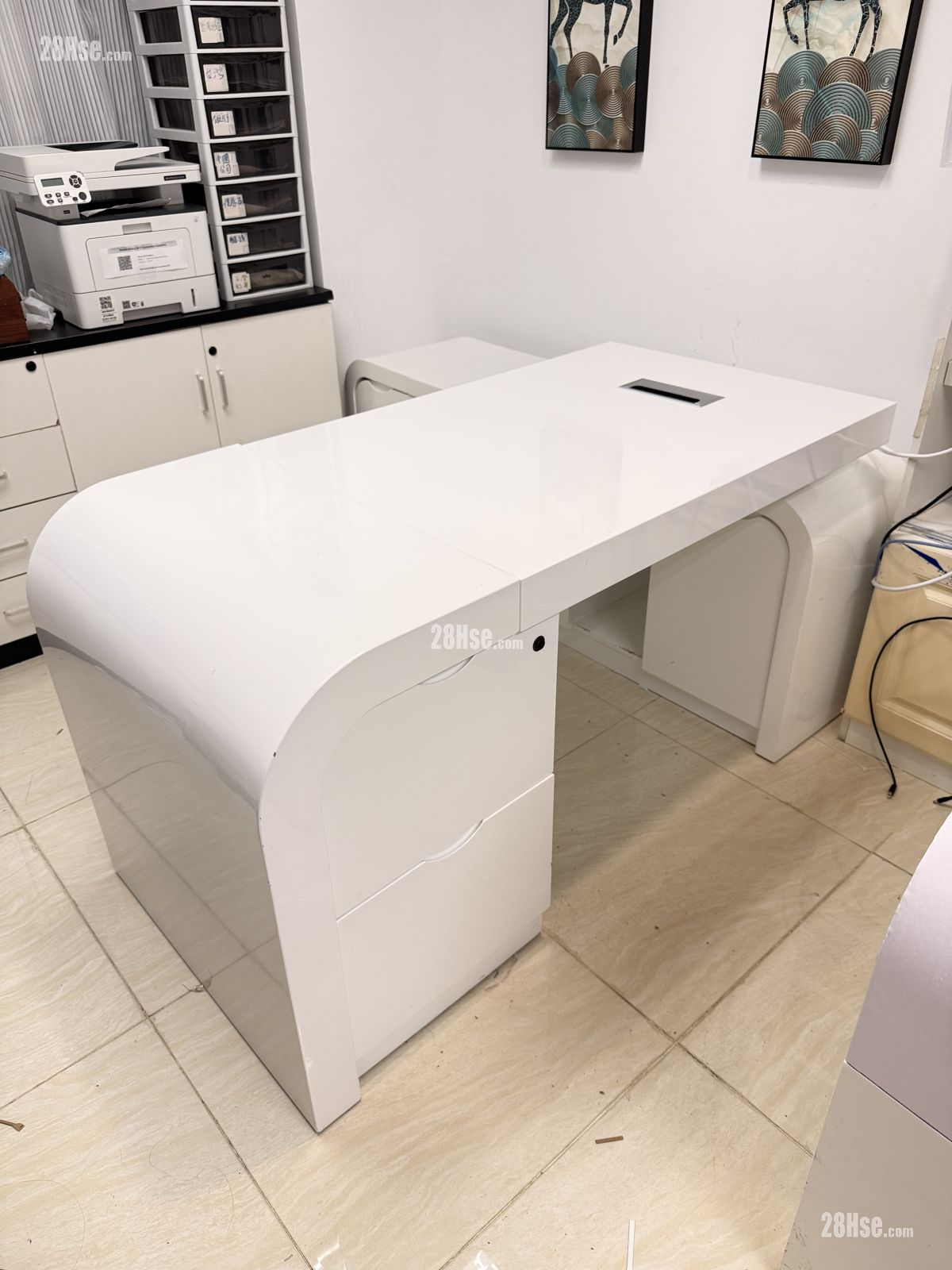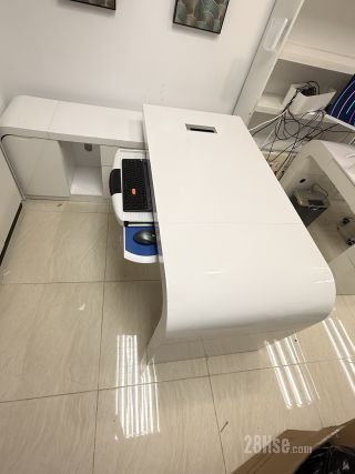 ️优质高级纯白亮面焗油老板办公枱桌连侧边柜,弧形角流线形,自由移动L形边柜在左边或右边