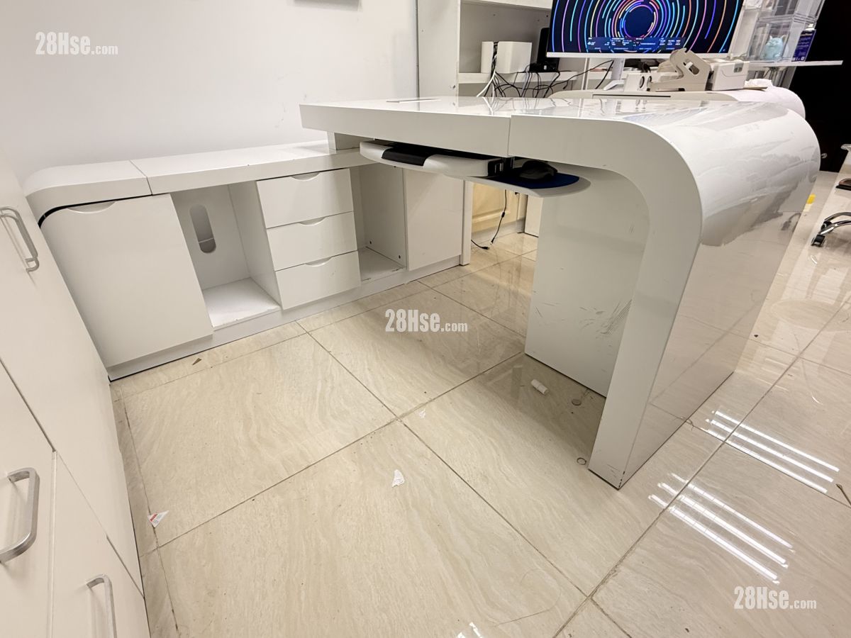 ️优质高级纯白亮面焗油老板办公枱桌连侧边柜,弧形角自由移动L形边柜