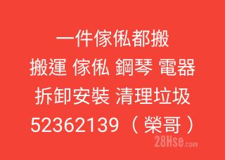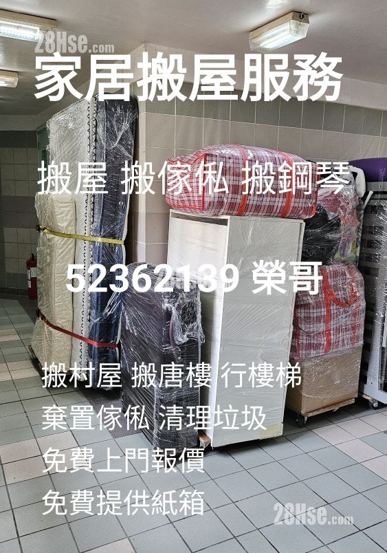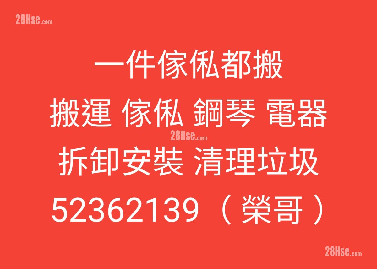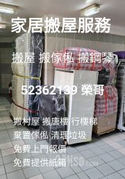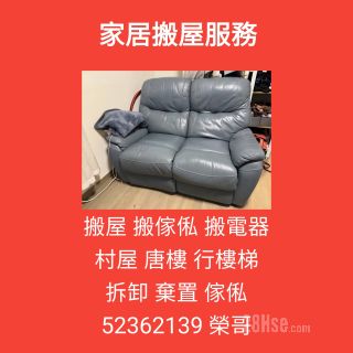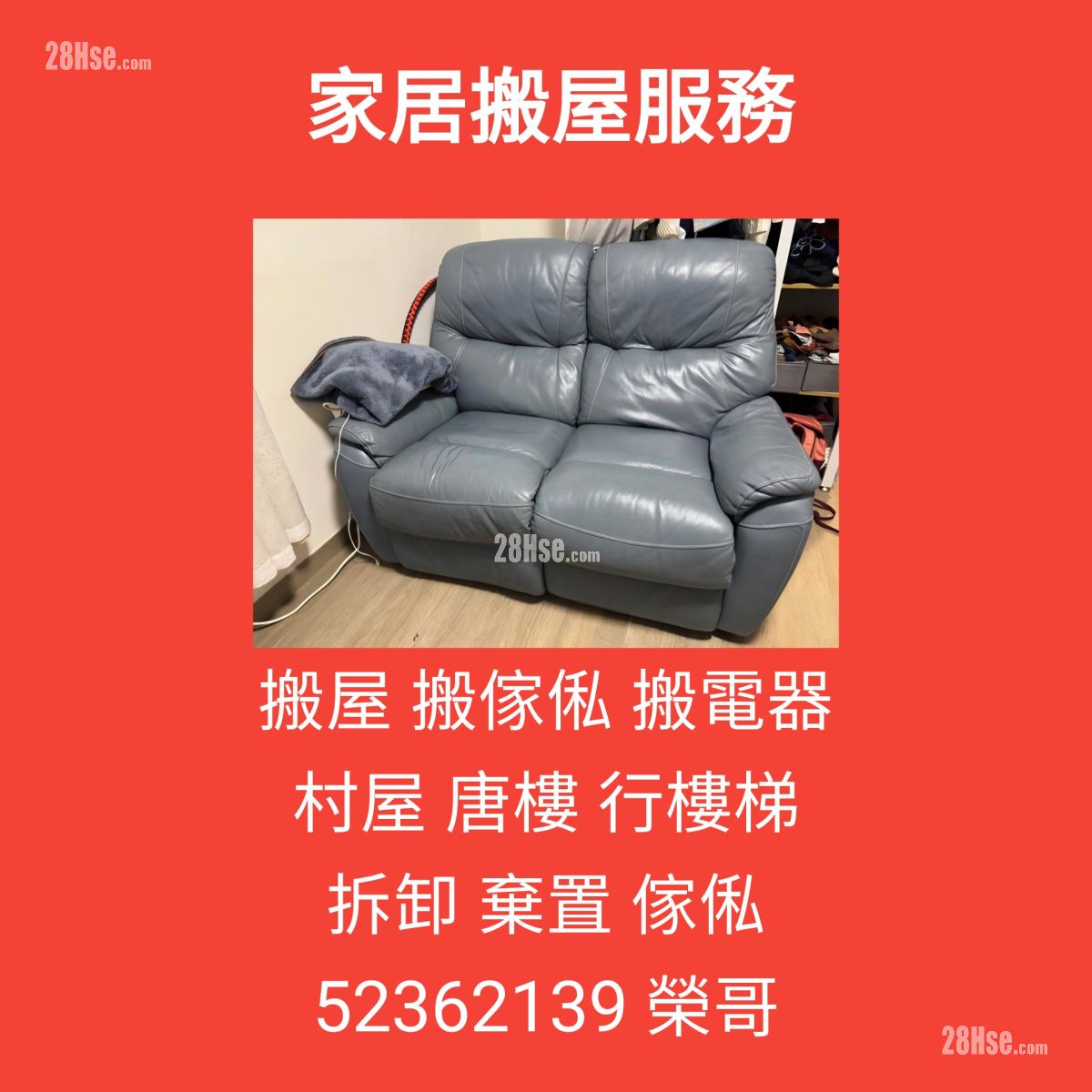 家居搬屋服务, 村屋,唐楼,行楼梯。 搬运、 拆卸、安装家俬,电器。 弃置家俬,清理垃圾。