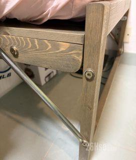 全实木收纳单人折叠床,床的设计允许折叠,方便收纳及运输。床的颜色为木色,带有木纹。床的阔度为两尺半(约76.5 cm),总长度为188 cm,适合身高175cm或以下人士。