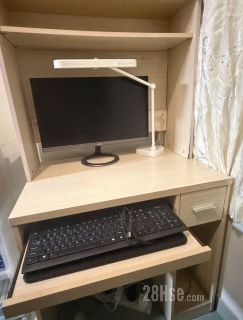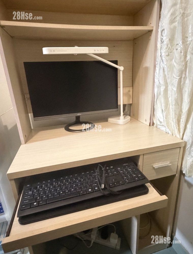 良好使用,外表光滑新净,眼见得到的地方都算OK靓仔(如图) ,放键盘的滑轮板及柜桶拉出顺畅,有正常岁月使用痕迹及柜角一点爆掉(如图)不影响正常使用,但不适合完美主义者~